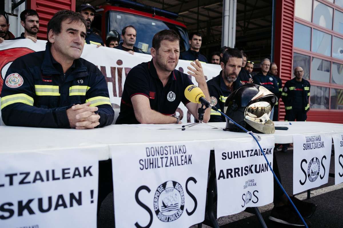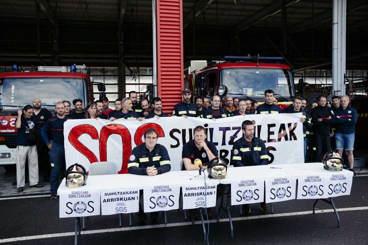 «En agosto reventamos». Así de claro se han expresado esta mañana de lunes los bomberos de Donostia durante una rueda de prensa en su sede, junto a Garbera, donde han hecho balance de estos dos meses de campaña que llevan a cabo para denunciar «el abandono del servicio» y el «caos organizativo».