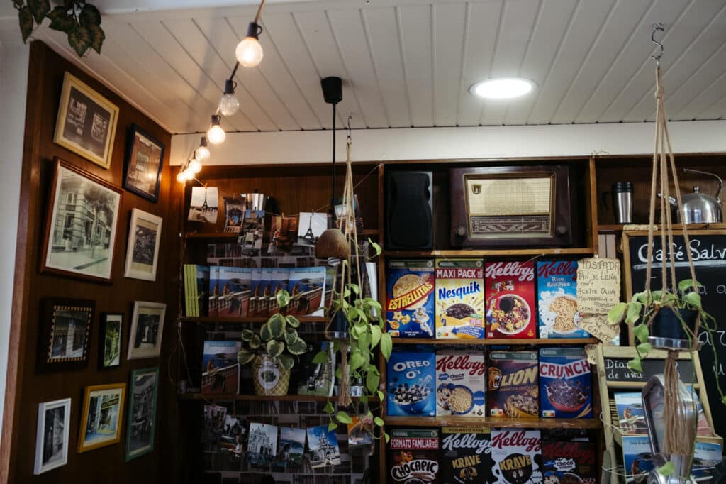 La cafetería está repleta de fotos, recortes, postales y objetos con un gran peso histórico y emocional configurando una suerte de museo familiar. Por ejemplo, en una repisa descansan dos molinillos “con más de cien años” de vida que perteneció a los primeros dueños. Las balanzas y un primitivo transistor con encanto están a la vista. En el interior de la barra hay una vieja caja registradora que es una auténtica reliquia: calcula hasta los céntimos de las antiguas pesetas. La máquina funciona, asegura Asun.