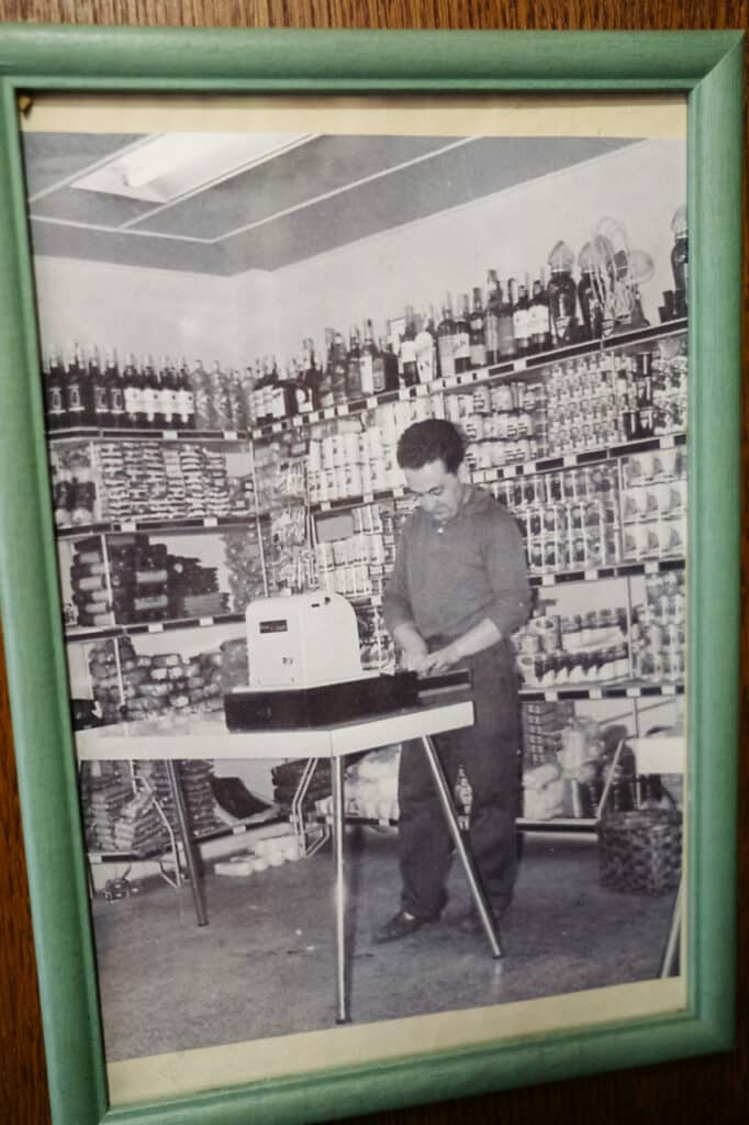 En un rincón se puede desenredar la madeja familiar a través de una serie de fotografías. Las imágenes nos van dando algunas pistas sobre los 85 años de historia de este lugar. El abuelo de Asun abrió el comercio el 1 de noviembre de 1938. Durante décadas, funcionó como una tienda de ultramarinos que surtía a las villas del barrio con un servicio de reparto a domicilio. El delivery de la época. También atendían a los vecinos que se acercaban al local y que acostumbraban a fiar las compras de alimentos y artículos de primera necesidad. Apunte señor Fermín, apunte señora Asun. Las deudas se amontonaban en unas notas insertadas en un pincho metálico de la barra.