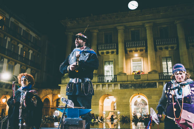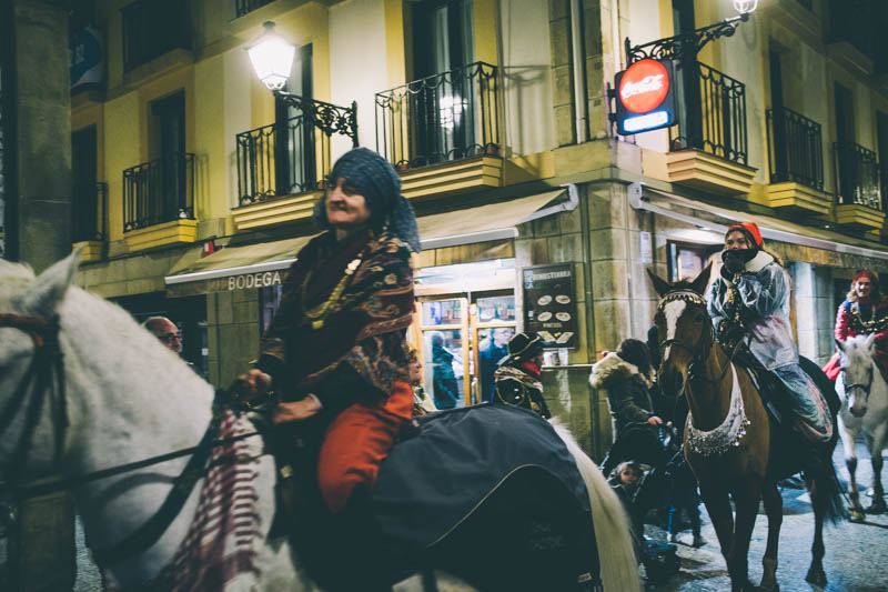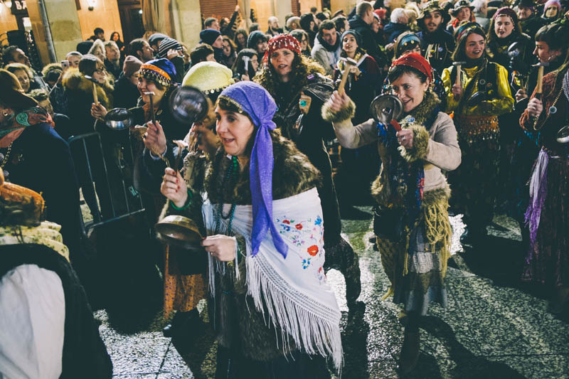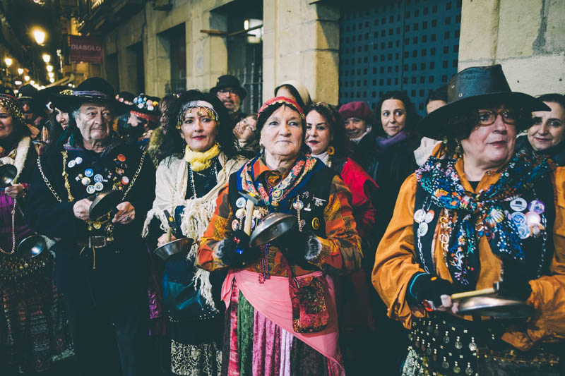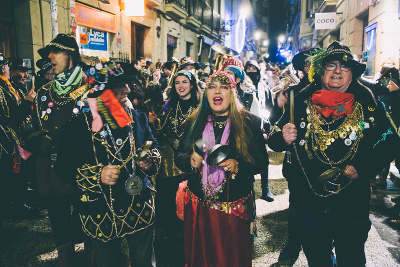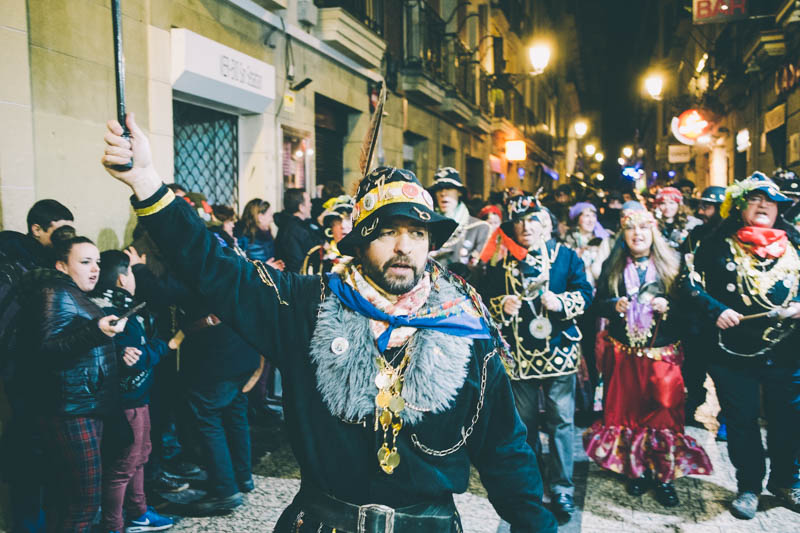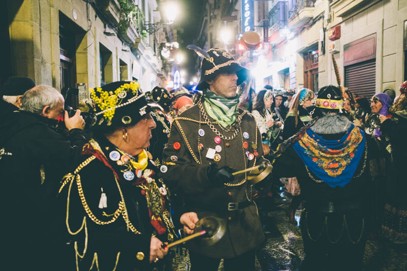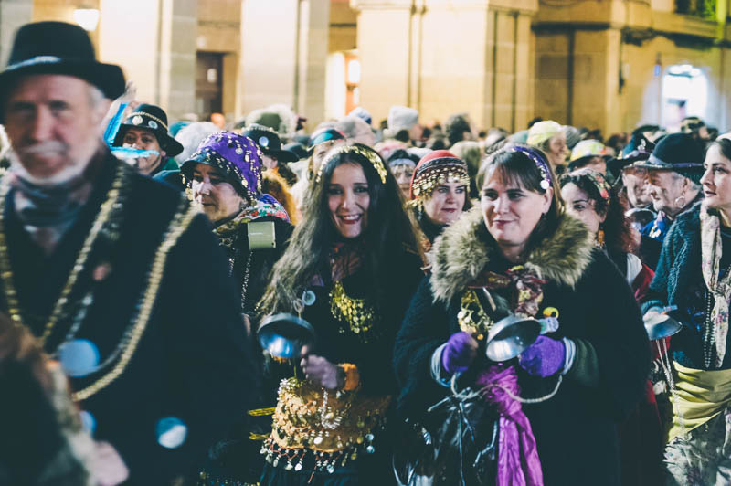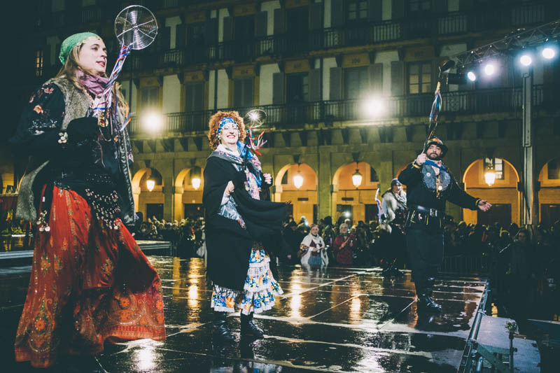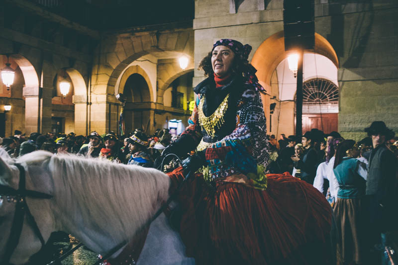 Con las zíngaras y sus trajes coloridos y con la música, el cacharrerío y las voces cubrieron el camino las comparsas. Este año el desfile nocturno estuvo compuesta por 19 tribus y presidieron la comparsa componentes de la Compañía Jaizkibel del Alarde Mixto de Hondarribia. El papel de Reina lo ostentó Asier Garayalde Etxaburu y sus Damas serán Izaskun Larruskain Arbelaitz y Miren Sagarzazu González.