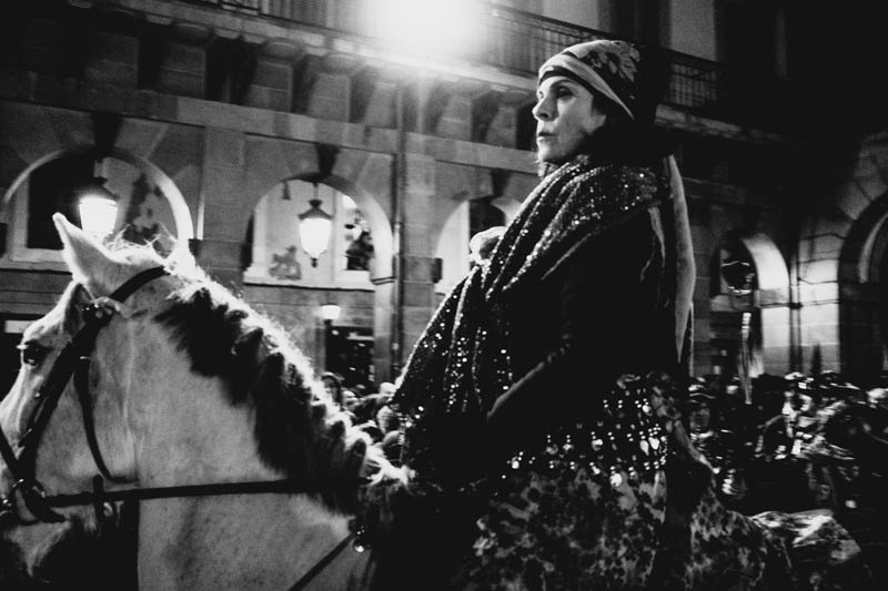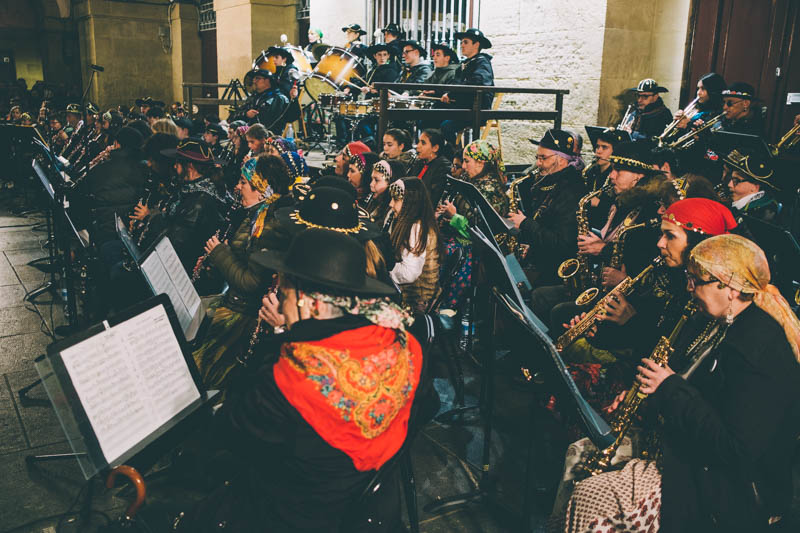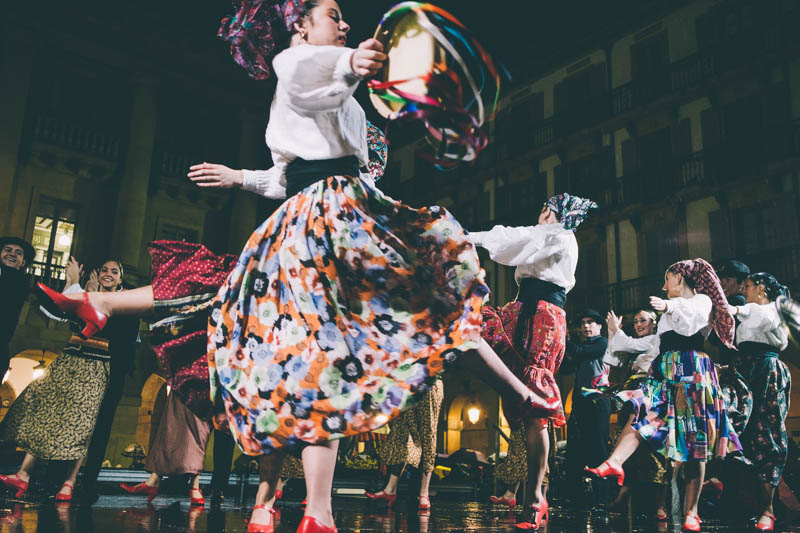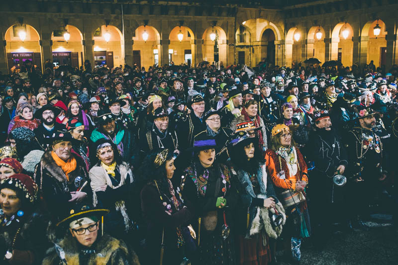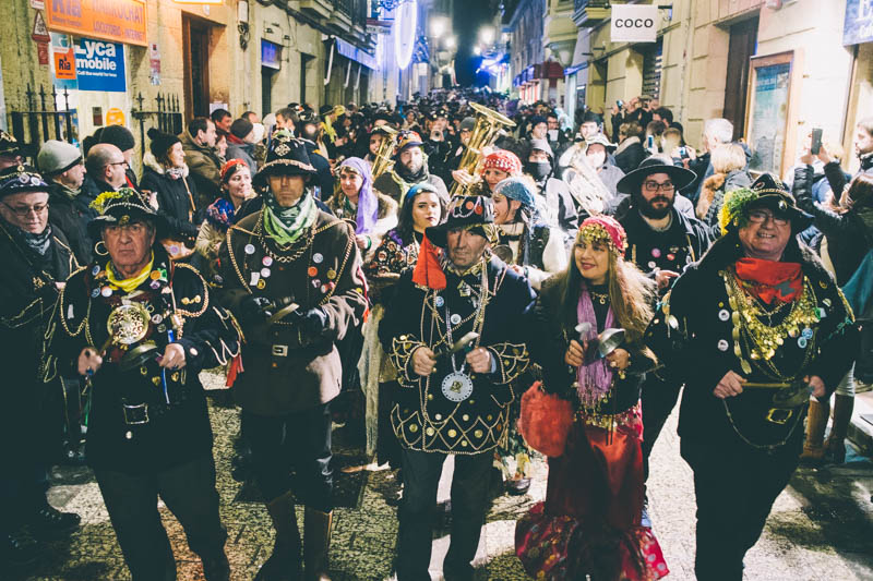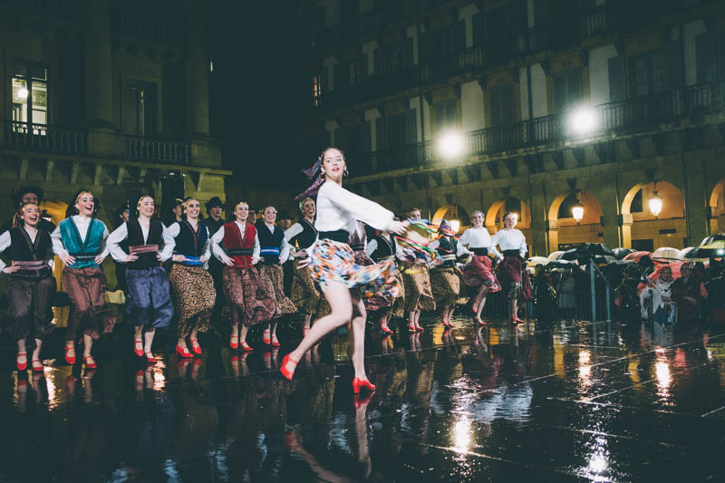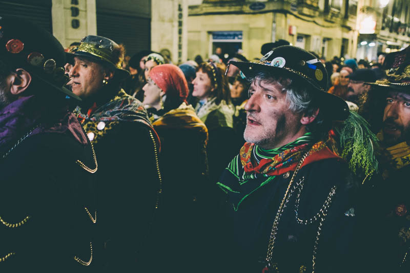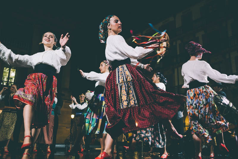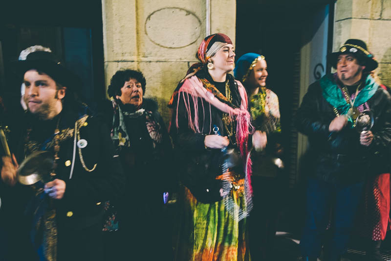 Con las zíngaras y sus trajes coloridos y con la música, el cacharrerío y las voces cubrieron el camino las comparsas. Este año el desfile nocturno estuvo compuesta por 19 tribus y presidieron la comparsa componentes de la Compañía Jaizkibel del Alarde Mixto de Hondarribia. El papel de Reina lo ostentó Asier Garayalde Etxaburu y sus Damas serán Izaskun Larruskain Arbelaitz y Miren Sagarzazu González.