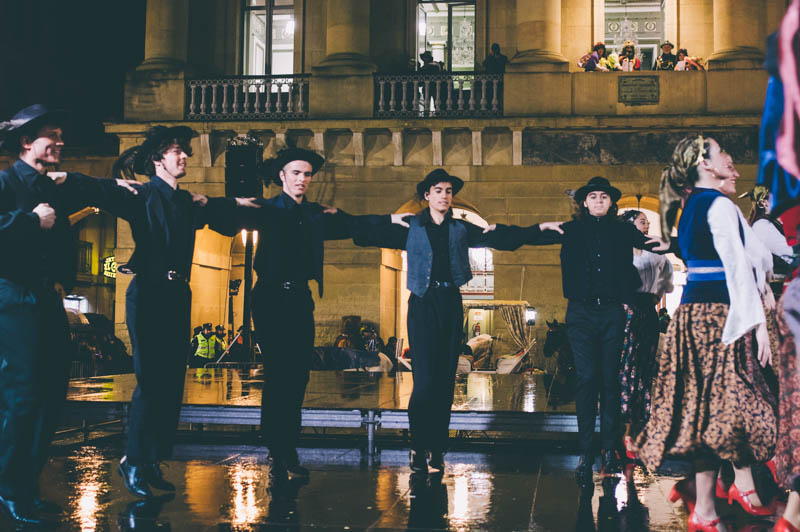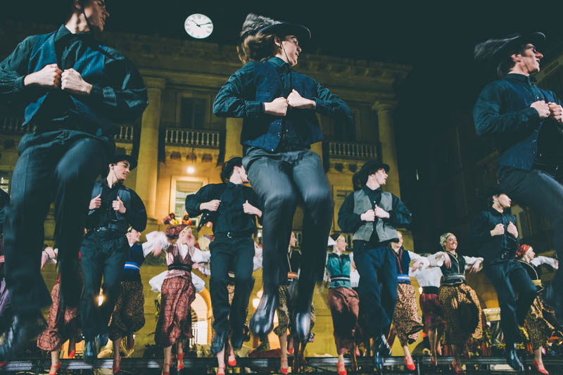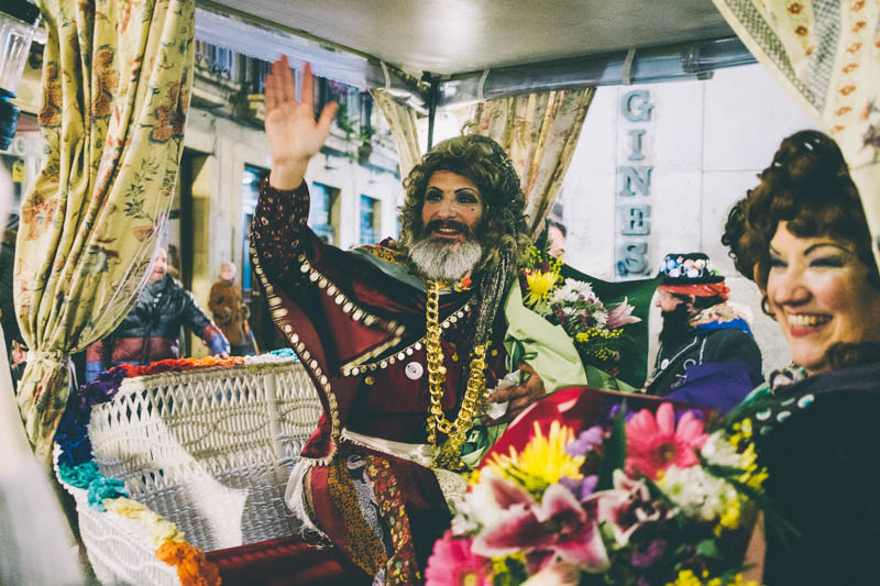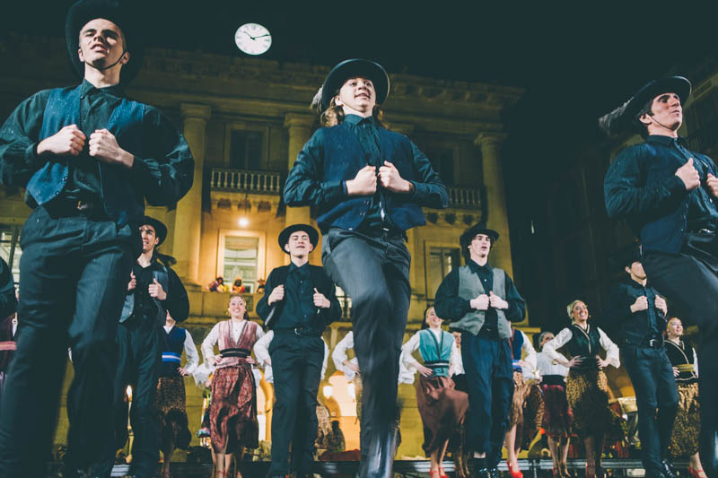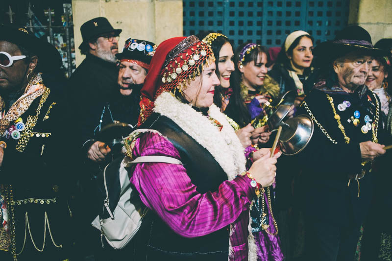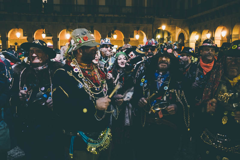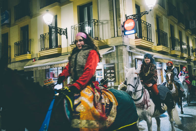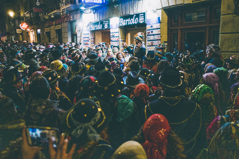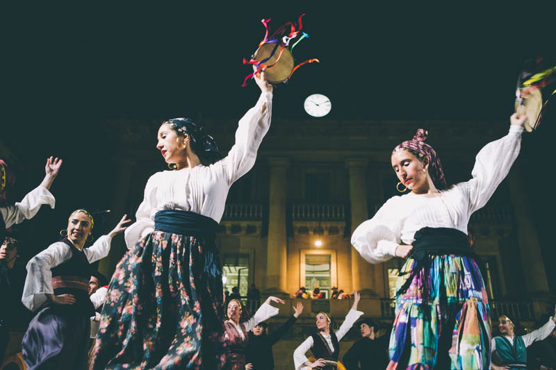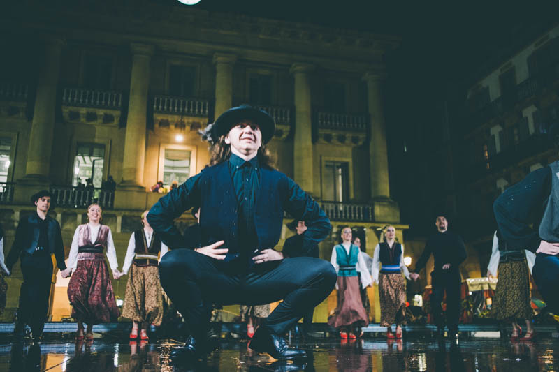 Con las zíngaras y sus trajes coloridos y con la música, el cacharrerío y las voces cubrieron el camino las comparsas. Este año el desfile nocturno estuvo compuesta por 19 tribus y presidieron la comparsa componentes de la Compañía Jaizkibel del Alarde Mixto de Hondarribia. El papel de Reina lo ostentó Asier Garayalde Etxaburu y sus Damas serán Izaskun Larruskain Arbelaitz y Miren Sagarzazu González.