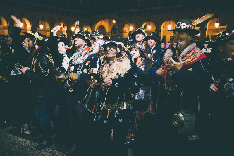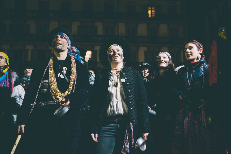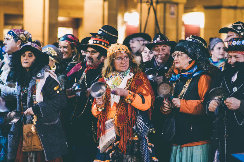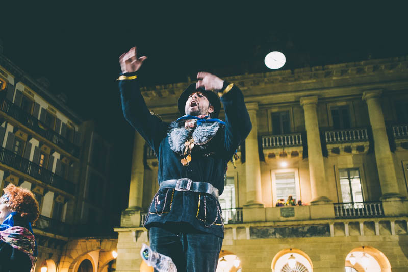 Quienes pensaban que la borrasca Helena dejaría menguado el fin de semana de Caldereros se equivocaban, y es que ayer pese a la lluvia y el viento circularon por Donostia, primero por los barrios, por la noche por la Parte Vieja, como si no hubiera un mañana, y además con público que quiso disfrutar del espectáculo.