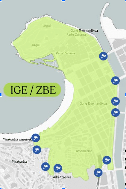Diez cámaras controlarán el acceso a la Zona de Bajas Emisiones (ZBE) de Donostia, cuya entrada en vigor, gradual, comenzará el 1 de enero de 2025. Además hoy se han sabido otras novedades: que la ZBE englobará también el Muelle y Arbaizenea y que los vehículos de los mayores de 70 años, residentes, podrán pasar aún sin disponer de etiqueta ambiental. También se ha sabido que las sanciones para los infractores serán de 200 euros.