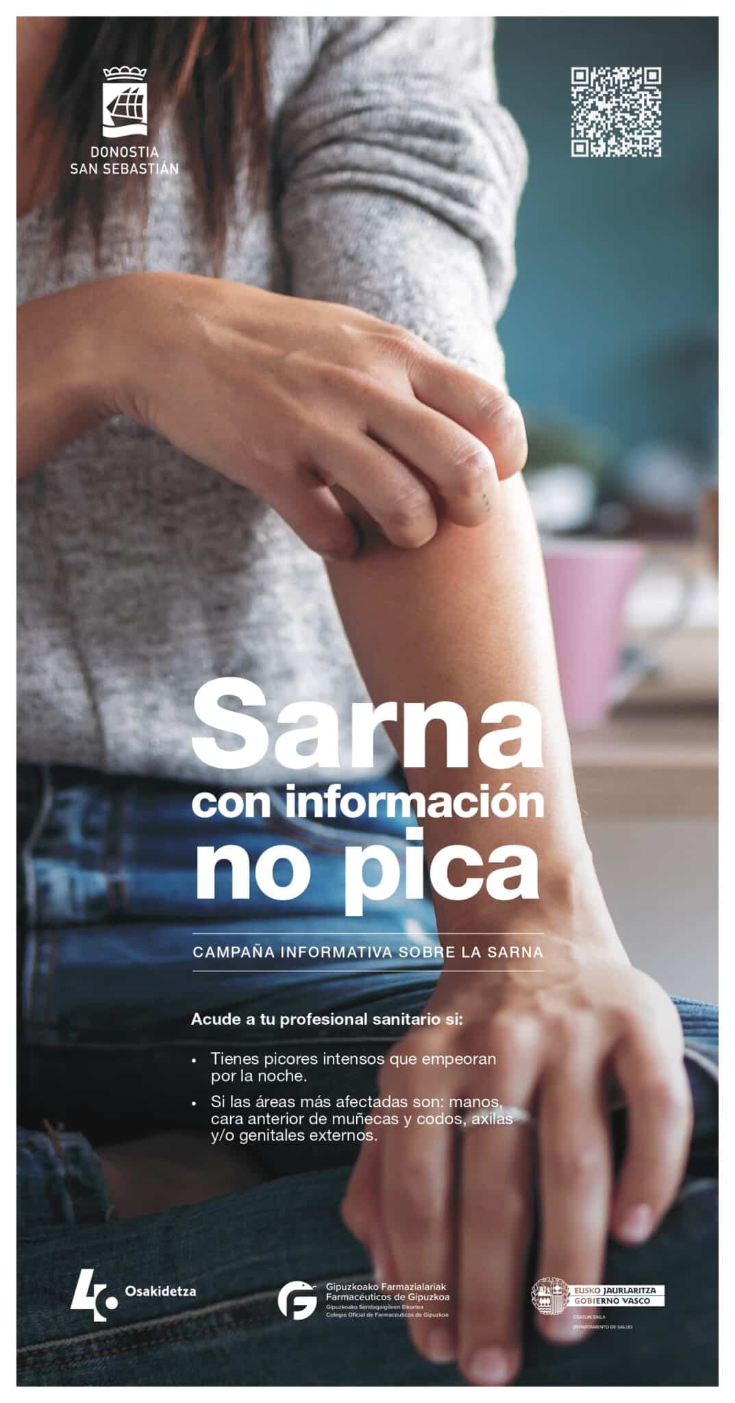 “Sarna con información no pica” es el lema escogido para la campaña. Se han editado carteles y folletos informativos que se pondrán en centros de salud, centros escolares, residencias, polideportivos, bibliotecas y farmacias. Además se difundirá el mensaje por las redes sociales y webs.