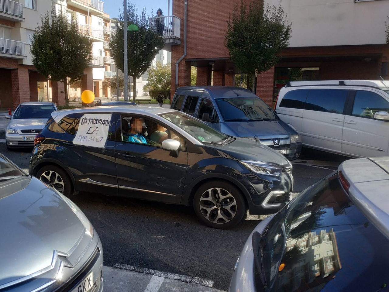 Una caravana de una veintena de vehículos ha recorrido esta mañana Hernani con gritos contra las restricciones derivadas del Covid-19, eslóganes negacionistas y pitidos. «Derecho a respirar» y «No a las PCRs», tanto en en euskera como en castellano, han sido las frases más escuchadas.