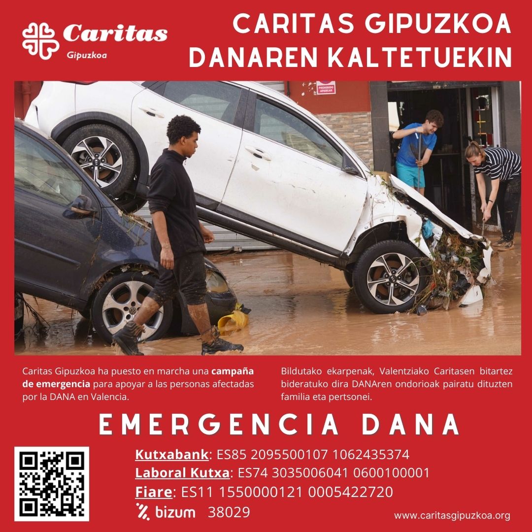 Caritas Gipuzkoa ha recaudado 275.000 euros que ha enviado ya a Caritas Valencia para ayudar a los damnificados por la DANA.