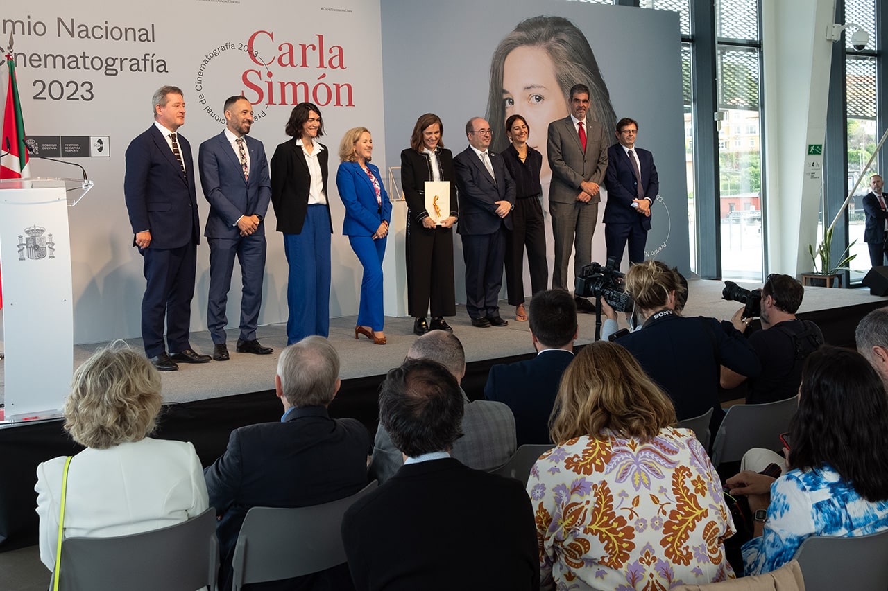 La ganadora del Oso de Oro de la Berlinale de 2022 ha recibido el galardón de manos del ministro de Cultura y Deporte, Miquel Iceta quien ha destacado que, con solo dos películas, «Alcarrás» (2022) y «Verano 1993» (2017), Simón «ha marcado la historia del cine reciente», gracias a «su solidez y personalidad».