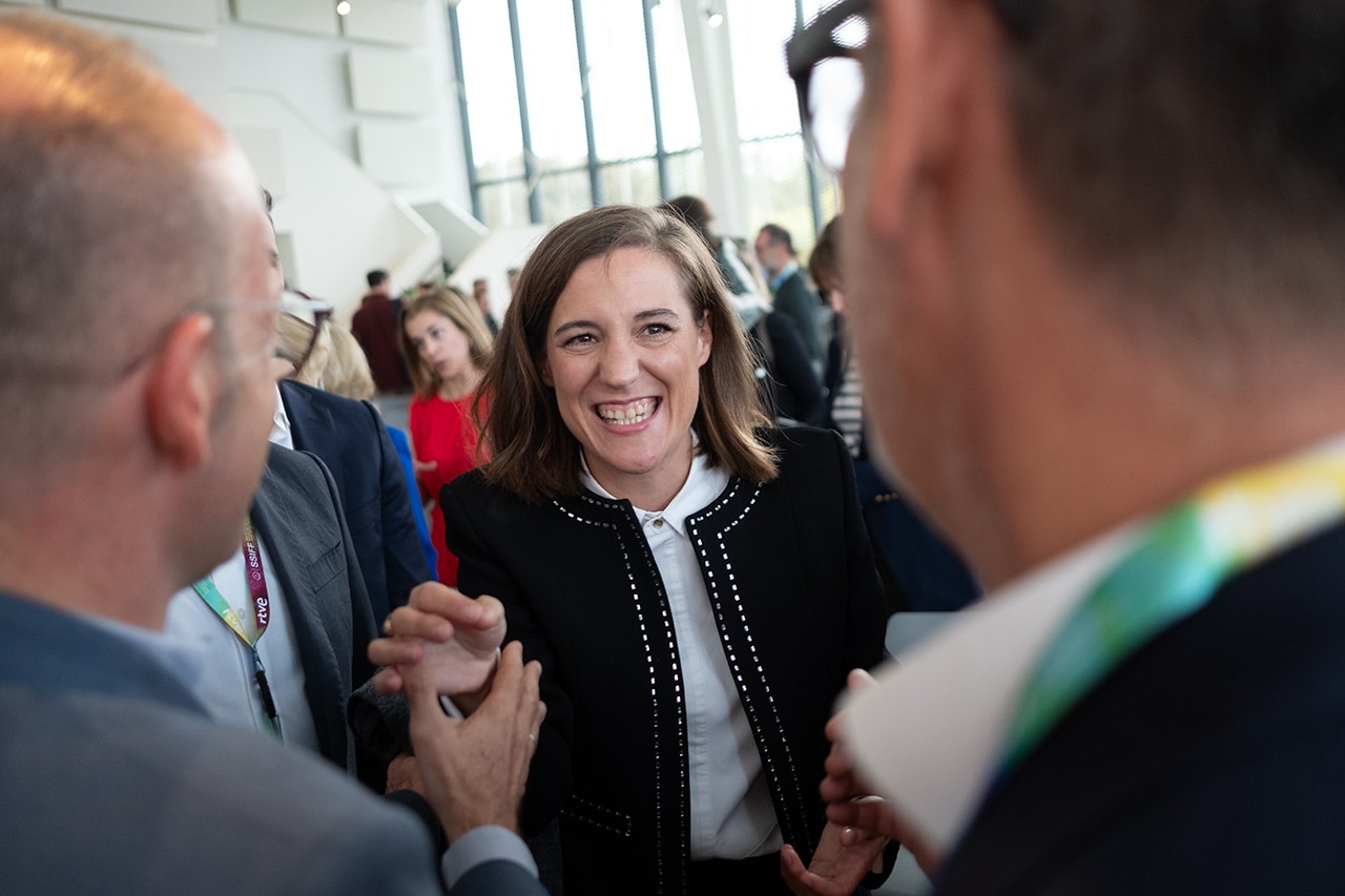 Las directoras y amigas Meritxell Colell y Elena López Riera han sido las encargadas de presentar a la premiada en el acto en el edificio de Tabakalera al que han asistido personalidades del mundo de la cultura y las instituciones, como la vicepresidenta primera y ministra de Economía Nadia Calviño, el alcalde de San Sebastián y el consejero de Cultura del Gobierno vasco.