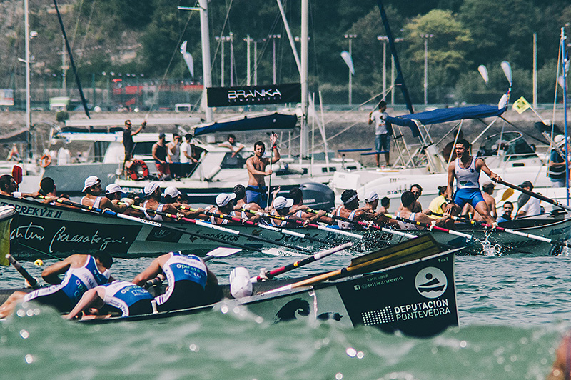 Ni dos segundos han separado a las embarcaciones de Urdaibai y Hondarribi en la primera tanda masculina de las regatas