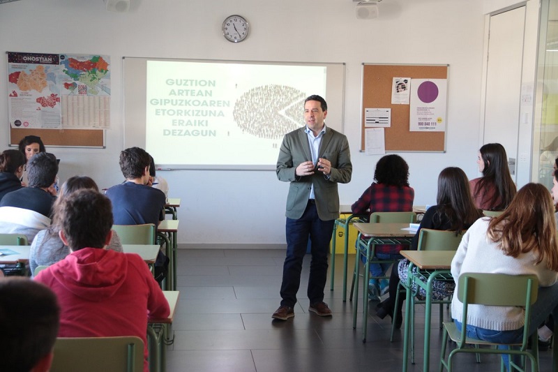 Imanol Lasa Gobernantza eta Gizartearekiko Komunikazioko diputatua Donostiako Zurriola ikastolako ikasleekin batzartu zen ostiralean, Aldundiaren jardunaren berri emateko, eta haien