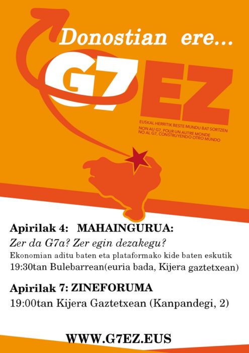 Donostiako G7 EZ! plataformak mahainguru bat antolatu du biharko. ‘Zer da G7a? Zer egin dezakegu’ da bere izenburua, eta honekin,