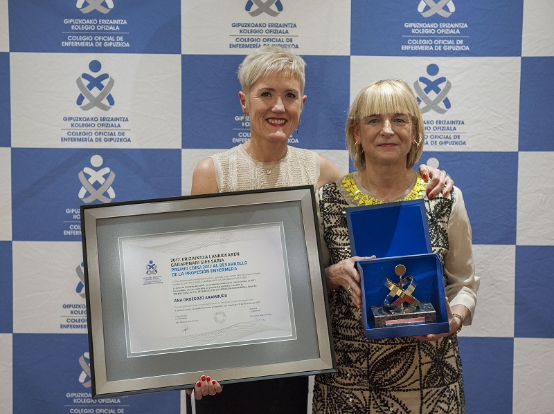 La directora de Enfermería de Matia Fundazioa, Ana Orbegozo, recibió el pasado viernes en San Sebastián el Premio del Colegio