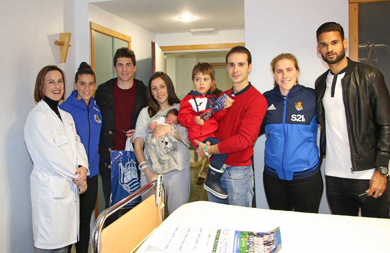 Varios miembros de la plantilla de la Real Sociedad se han pasado esta tarde por Policlínica Gipuzkoa para felicitar la