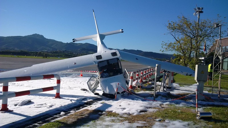 Antes de las 10 horas una avioneta ha chocado contra la verja de la estación meteorológica del aeropuerto de Hondarribia