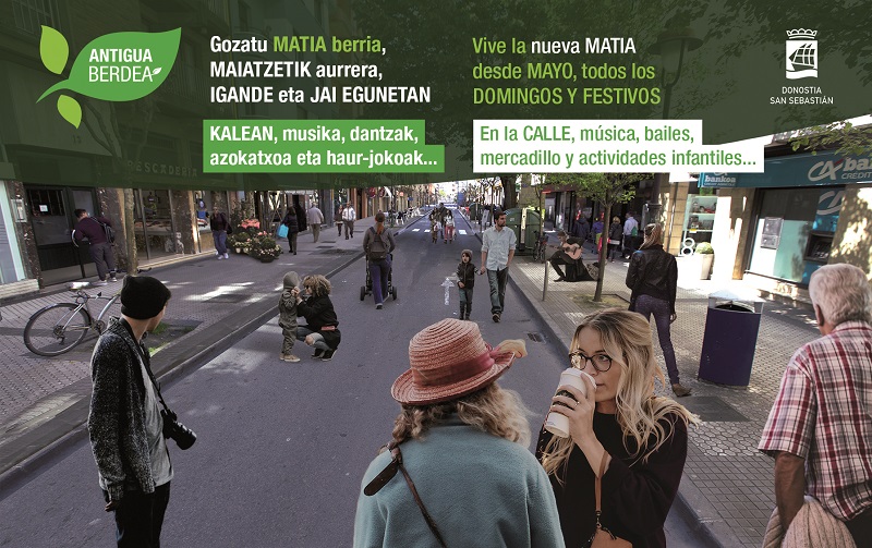 Cientos de personas han disfrutado del primer domingo con la calle Matia peatonalizada en una iniciativa que, si bien no