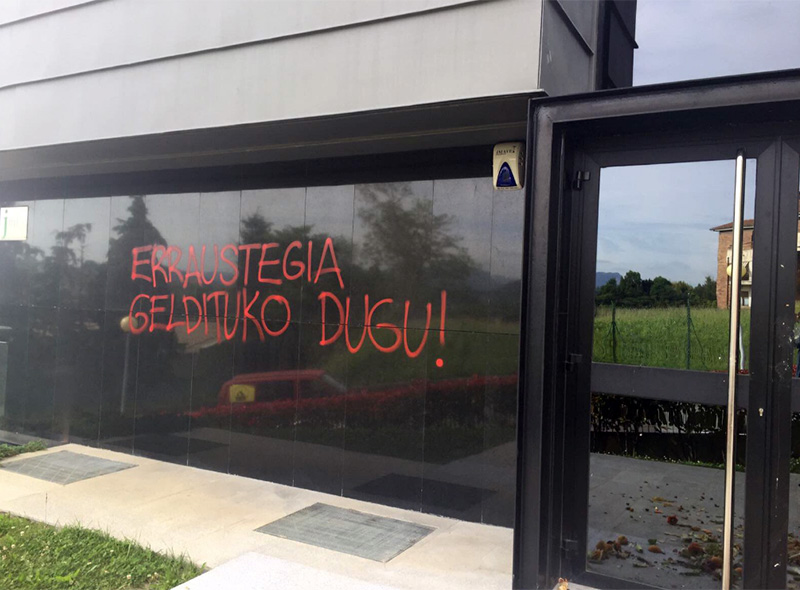 Las juventudes de Sortu, Ernai, atacaron ayer la sede del Partido Nacionalista Vasco, en Donostia, con motivo del inicio de