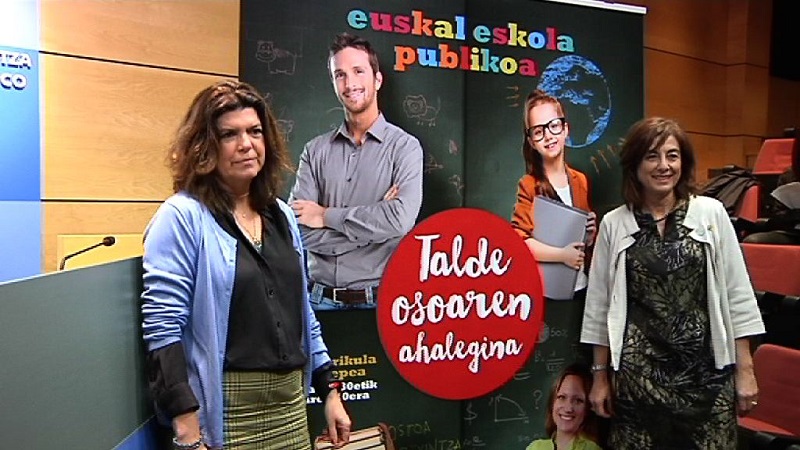 La consejera de Educación, Cristina Uriarte, junto con la viceconsejera Maite Alonso, ha presentado esta mañana en Bilbao la campaña