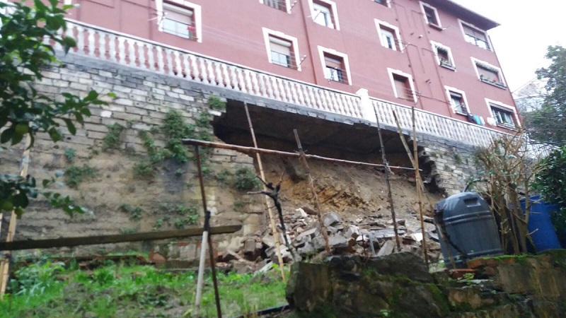 La intensa lluvia de estos días provocó el domingo el cierre del paso peatonal de Konkorrenea, en Egia, a causa