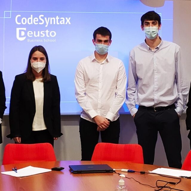 Enpresen Administrazio eta Zuzendaritzako eta Zuzenbideko Gradu Bikoitzeko ikasle talde bat ekintzailetza digitaleko ekimenen bideragarritasun azterketa lantzen ari da Codesyntaxekin