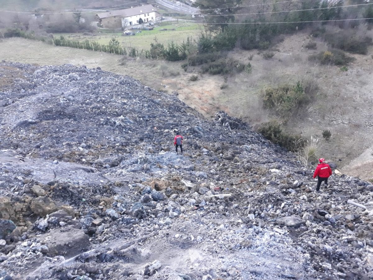 Hoy se reanudarán en el desprendimiento de Zaldibar las labores de búsqueda de las dos personas desaparecidas ayer durante un