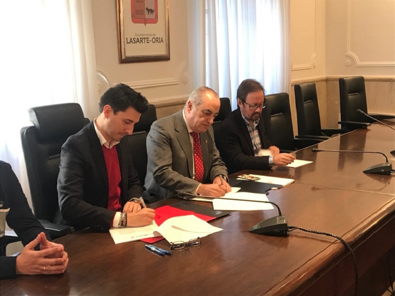 El consejero de Medio Ambiente, Planificación Territorial y Vivienda, Iñaki Arriola, y el alcalde de Lasarte-Oria, Jesús Zaballos, firmaron ayer