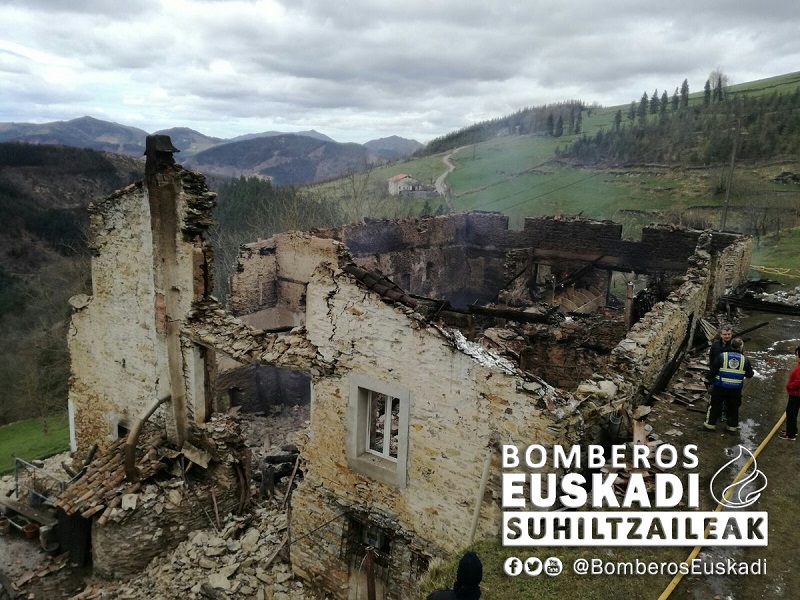 Un caserío de Bergara del barrio Elosua quedó calcinado la noche del sábado al domingo. El caserío Narbaiza Azpikoa empezó