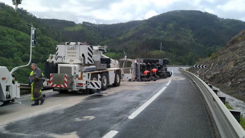 Un camión ha volcado tras hacer la tijera en Etzegarate, concretamente en el punto kilométrico 407 sentido a Irun, en