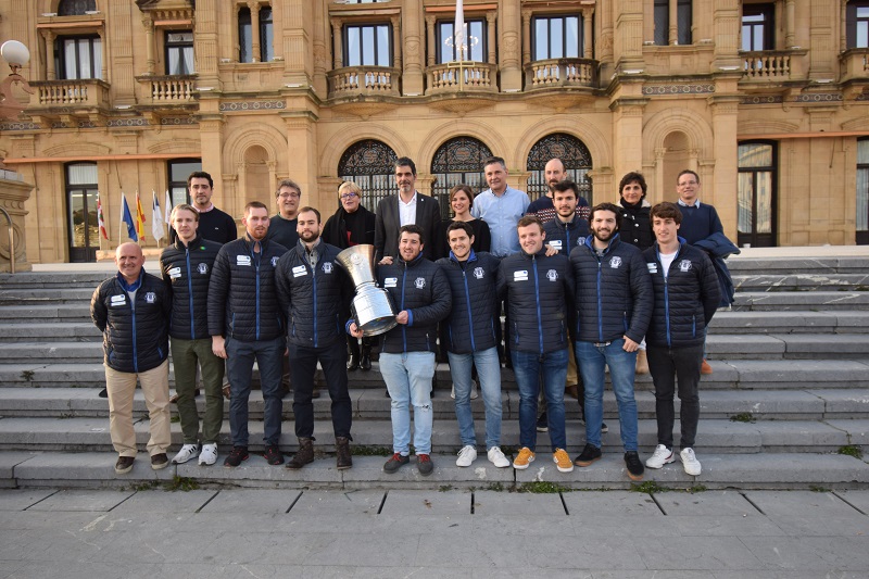 El Ayuntamiento de Donostia con el alcalde Eneko Goia a la cabeza ha recibido al Club de Hockey Hielo Txuri