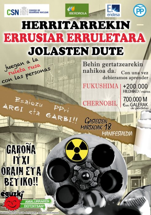 El colectivo ecologista Eguzki llama a participar mañana en Gasteiz en la manifestación contra la apertura de la central nuclear