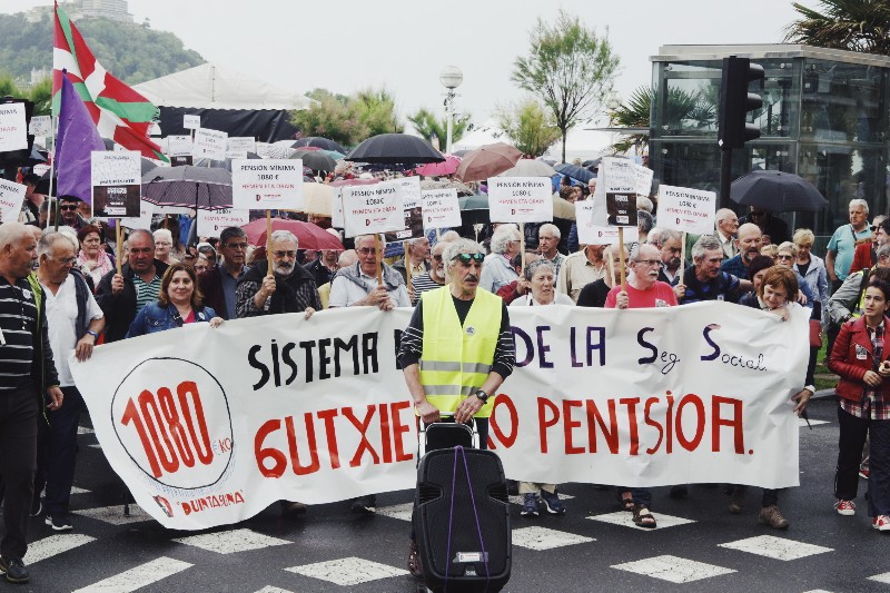 Defensa de las pensiones públicas, ninguna pensión por debajo del umbral de la pobreza, pensión mínima en Euskadi de 1.080 euros, derogación del factor de sostenibilidad y no al empleo precario que genera pensiones pobres. Los miles de pensionistas gipuzkoanos que se han dado cita hoy en Donostia secundados de manera creciente por familias, sindicatos y otros colectivos han reiterado una vez más cuáles son sus reivindicaciones.