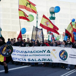 Policía Nacional y Guardia Civil han marchado por Donostia esta tarde agrupados en la plataforma Jusapol para pedir la equiparación