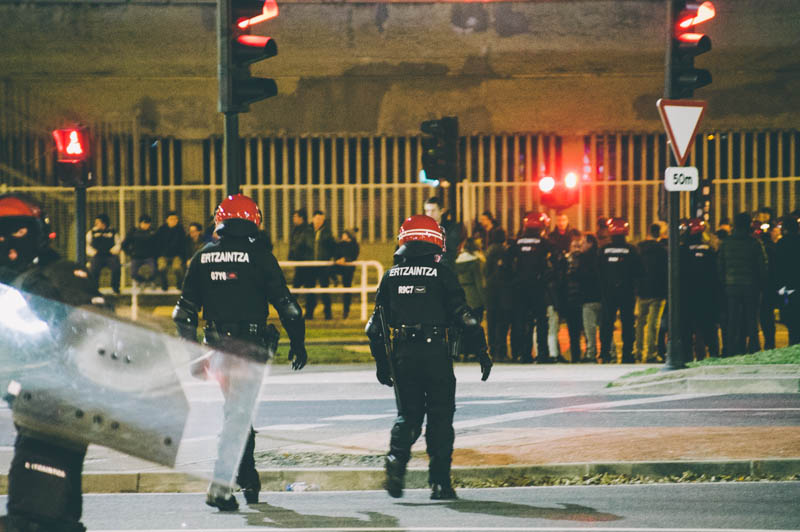 Momentos de tensión se vivieron ayer protagonizados por los hinchas del Zenit antes del encuentro en Anoeta, durante el mismo
