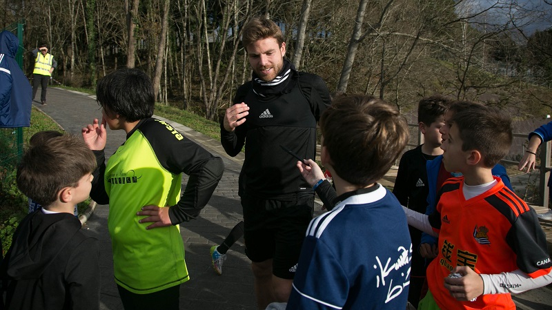 Los chavales de Gabonak Realarekin visitan a los jugadores de la Real Sociedad