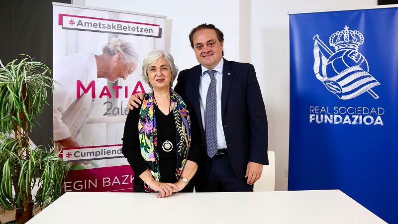 Esta mañana Jokin Aperribay, presidente de la Real Sociedad, y Mari Carmen Garmendia, presidenta del Patronato de Matia Fundazioa, han