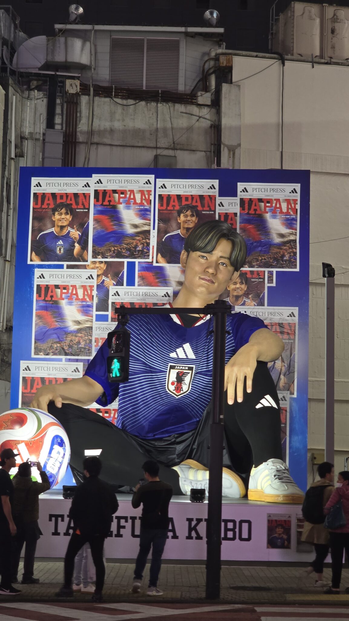 La figura del jugador es foto obligatoria para muchos japoneses. Y qué decir de los turistas donostiarras que se lo encuentran en el camino…
