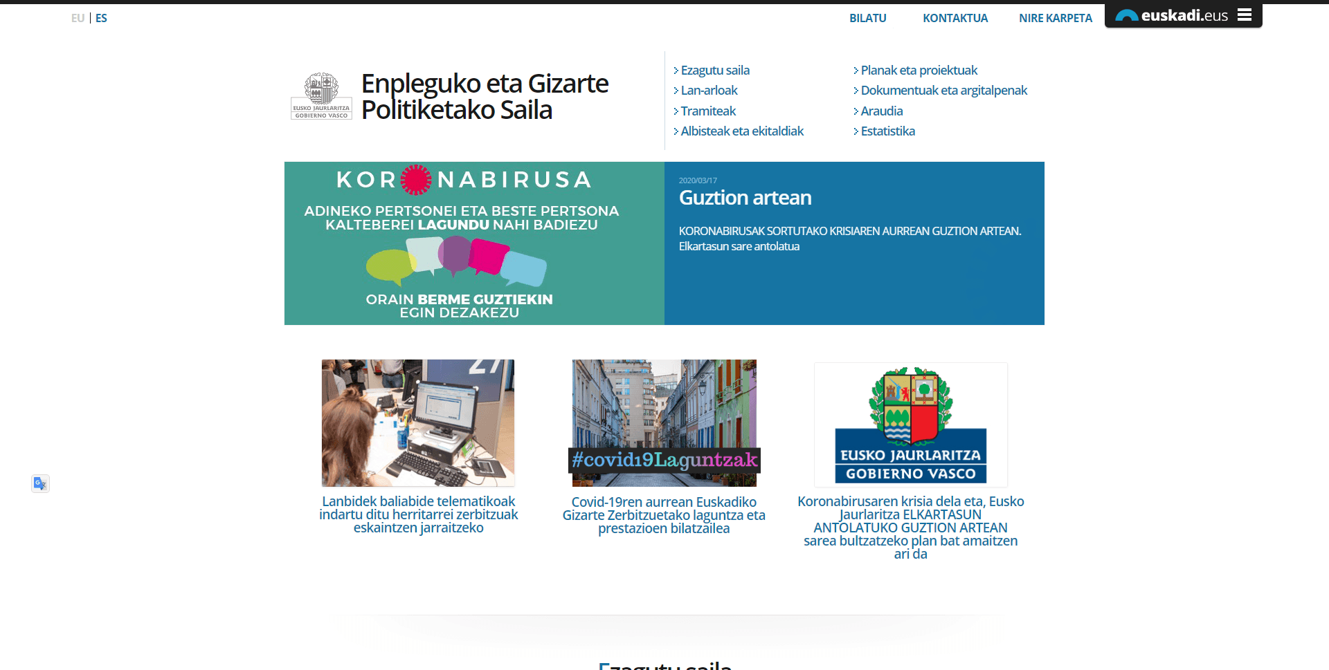 El Gobierno Vasco ha puesto en marcha un nuevo portal en internet, #covid19Laguntzak, que tiene como objetivo facilitar el acceso