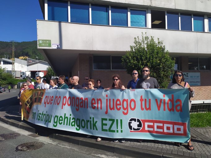 En la entrada del polígono Ipintza de Lezo se han manifestado hoy los sindicatos a causa de la muerte de