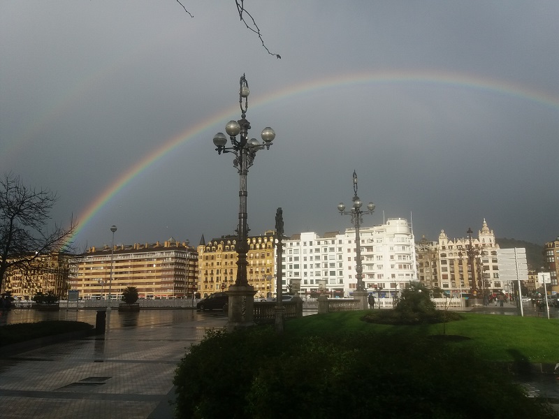 Después del primer chaparrón de esta tarde de viernes y seguramente como modesto descanso antes del siguiente, un perfecto arcoíris