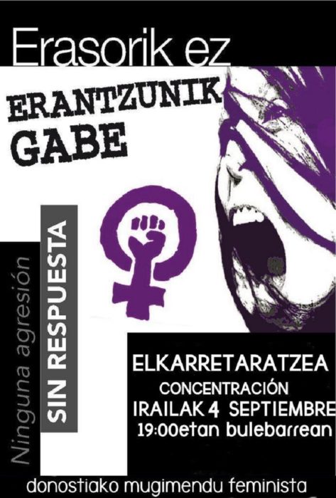 Donostiako Feministik ha convocado para esta tarde una manifestación con motivo de la agresión sexual de este pasado fin de