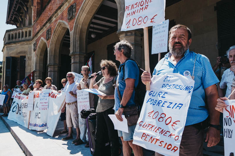 Los pensionistas gipuzkoanos han trasladado hoy su protesta de los lunes al Palacio Miramar, donde se celebran dos jornadas sobre