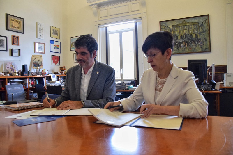 La consejera de Seguridad, Estefanía Beltrán de Heredia, y el alcalde de Donostia Eneko Goia han suscrito esta mañana en