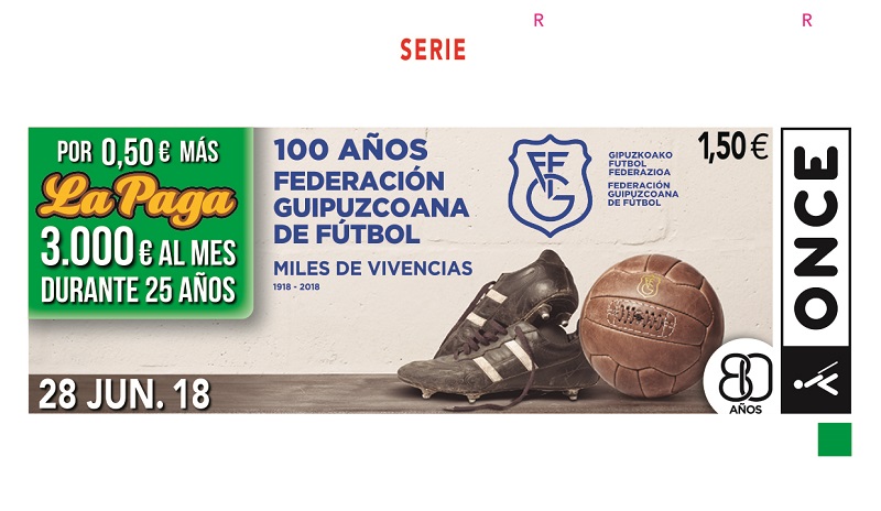 La ONCE dedicará el cupón correspondiente al sorteo del jueves 28 de junio a la Federación Gipuzkoana de Fútbol con