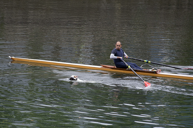 Cuatro agentes municipales y unos cuantos curiosos se han congregado en el ‘rescate’ de un perro en el Urumea esta mañana.