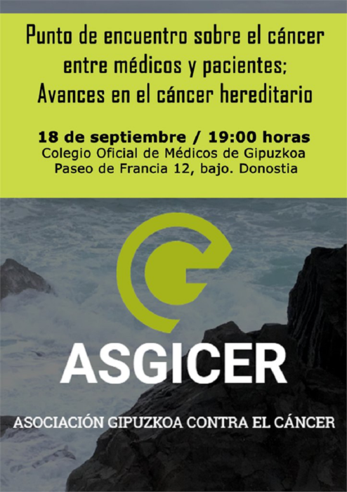 Asgicer, Gipuzkoa Contra el Cáncer-Gipuzkoa Minbiziaren Aurka, llevará a cabo durante el curso 2018-2019 una campaña contra el cáncer hereditario