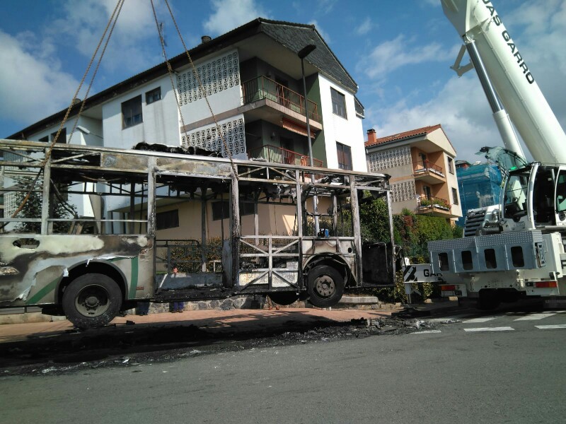 Sumamente aparatoso pero sin consecuencias personales ha sido el incendio de un autobús de Lurraldebus en la rotonda de Galarreta,