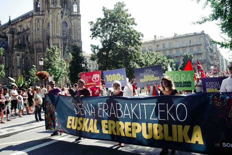 Cientos de personas respondieron ayer a la convocatoria de Sortu y se manifestaron en Donostia a favor de la República