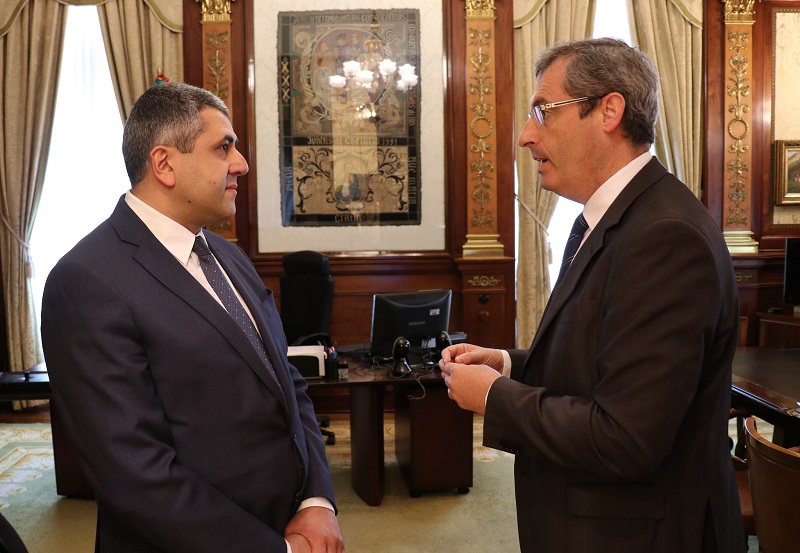 El diputado general Markel Olano ha recibido hoy en el palacio foral al secretario general de la Organización Mundial del
