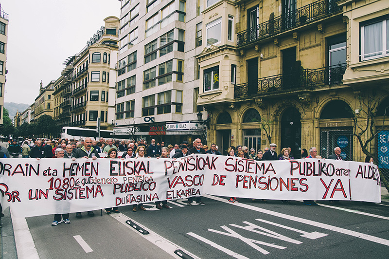 Duintasuna Elkartea, la Asociación de Jubilados y Pensionistas de Gipuzkoa, se han concentrado esta mañana en el Boulevard para pedir