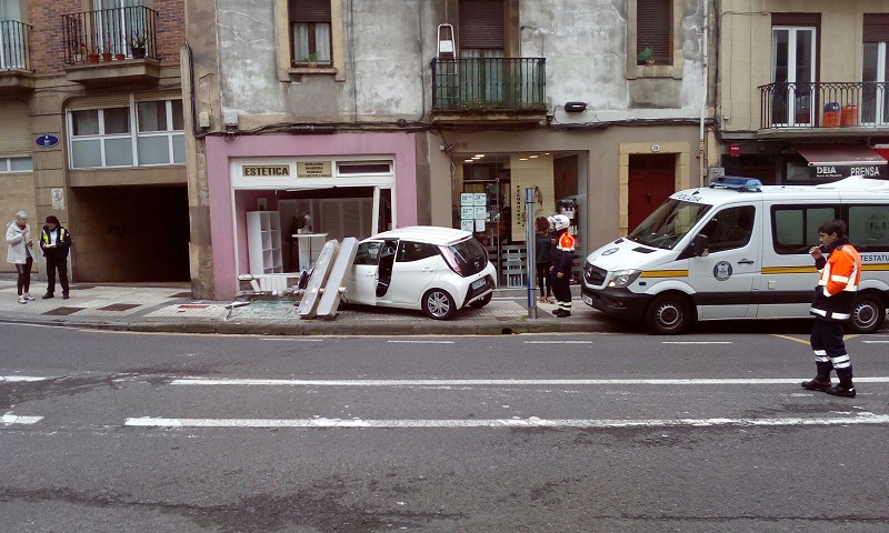 En la calle Egia y junto al número 28 se ha empotrado esta mañana un vehículo en un establecimiento de estética,